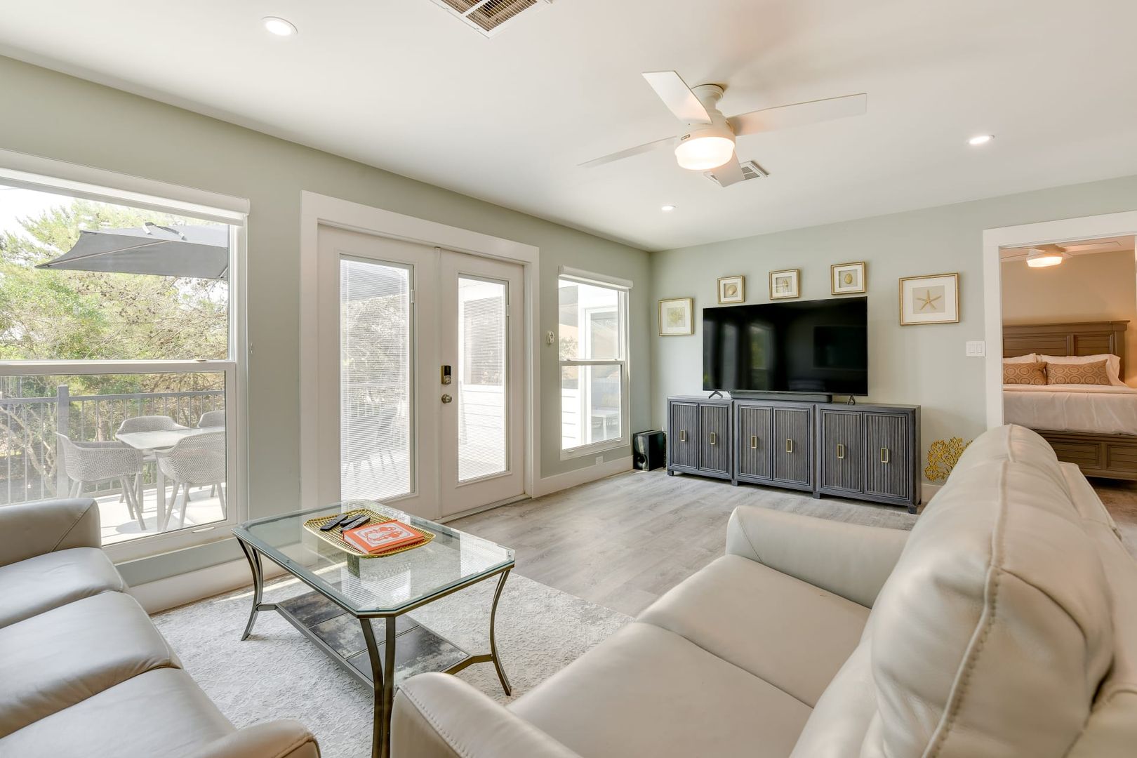 3 Bedroom, 3 bath. This newly renovated house on 30A is near shops, beaches, and restaurants. House is 2300 sqft + 2200 sqft of outside deck area with Fire pit and shade. Each bedroom has an attached full bath. Custom kitchen and bathroom cabinets with quarts tops. Game room/ entertainment area on the bottom floor. 1/3 acre... one block from public beach access. Can be furnished or unfurnished