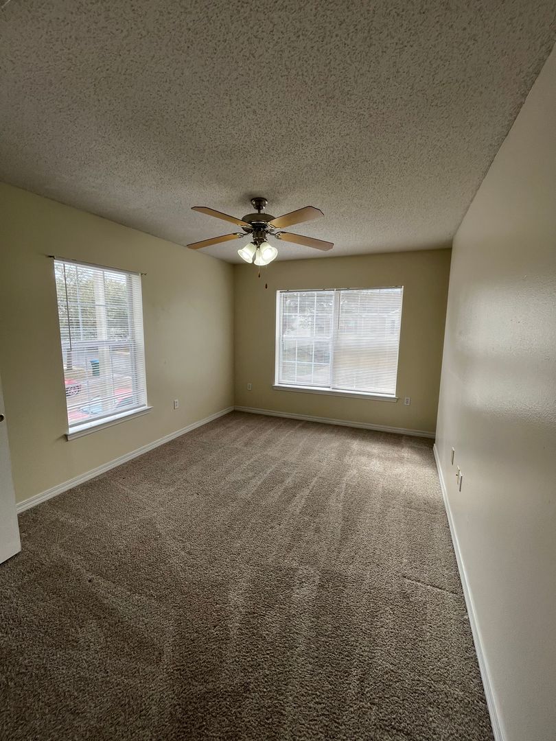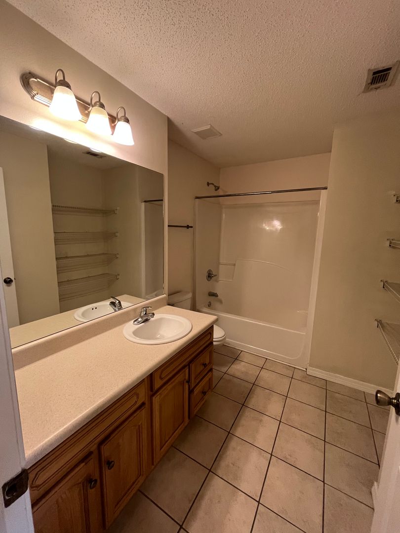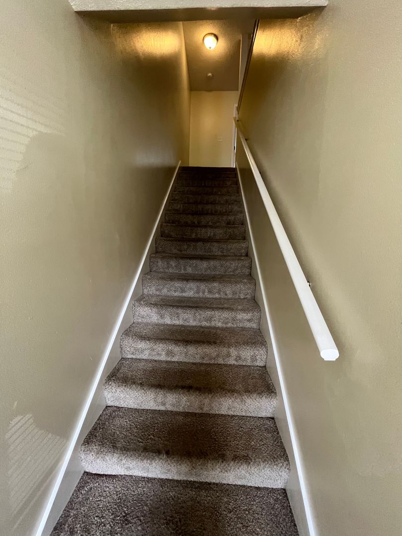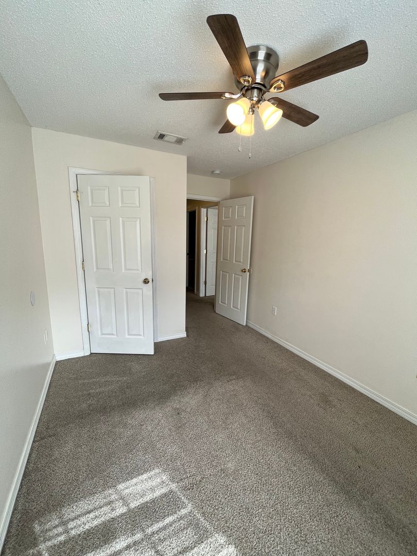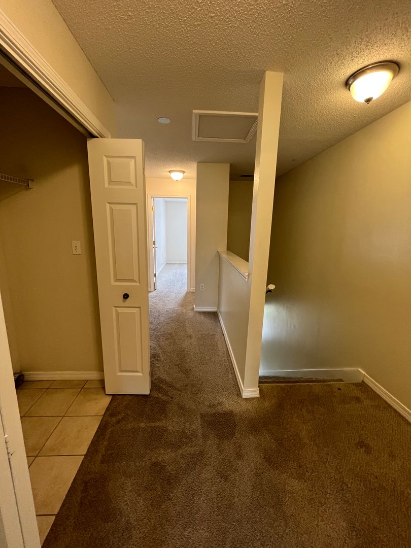 3 bedroom, 2 baths and utility area are upstairs. Master bedroom has a walk-in closet and bath vanity with dual sink. Downstairs is the spacious living/dining area. Lots of cabinets and counter top in the fully equipped kitchen. Breakfast bar and pantry. Half bath with pedestal sink. One car garage. HOA takes care of the lawn.