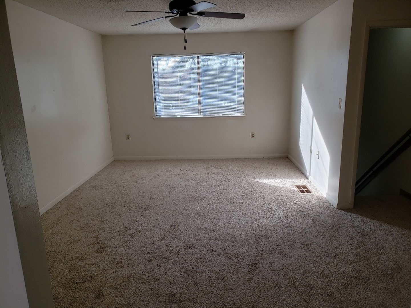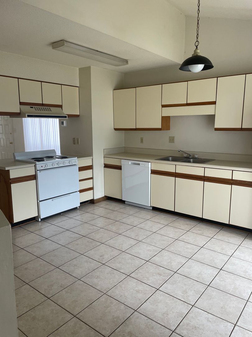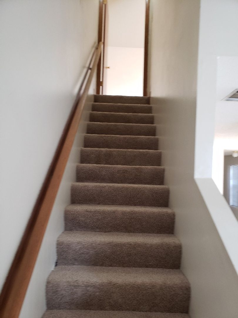 Great floor plan. Living room, dining area, kitchen, full bath and bedroom downstairs with large walk in closet. Master bedroom suit upstairs. ceramic tile and new carpet flooring. Two walk in closets up stairs.